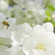 A bee collecting pollen from flowers of apple, slow motion