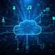 4K HUD and icon Digital cyberspace Internet Of Things IOT Cyber security concept. Big Data Cloud Computing Network Of Physical Devices With Secure Network Connectivity. Seamless Loop. 3D