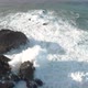 An aerial shot of waves hitting rocks at the edge of a cliff. The camera stays still, no movement.