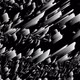 Distorted lines 3d render of geometric stripes with layering effect. Monochrome digital futurism with generated blur and decorative cyber design. Minimalistic interior grunge web.