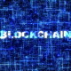Animated blockchain title on technology background for broadcast programs and films about finance, banking, web technologies, future industry, virtual and bitcoin.