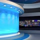 Tv Studio. Blue Studio. News studio. Newsroom Background for News Broadcasts. Blurred of studio at TV station. News channel design. Control room. 3D rendering