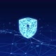 Motion graphic of Blue security shield logo with line connection and futuristic technology icon levitation on abstract background concept seamless loop video