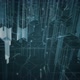 Technology motion background with blue wireframe shapes in the style of high rise buildings and fast moving digital data transfer and binary code ones and zeros. Full HD and looping.