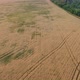 Boundless field. Dad is walking with the baby along the golden field. Zoom in camera. Aerial view video from copter. Top view.