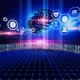 A virtual reality 3d graphics showing rotating human Brain model with medical icons on surrounding