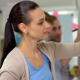 Businesswoman scheming on whiteboard using tab