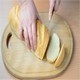 We cut bread. Shooting in kitchen.