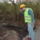 Bridge collapse. Destruction of structures across river with collapse of sections into water. destroyed bridge. old, broken asphalted over river. Road civil engineer evaluates results of destruction