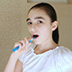 Cute little girl intensely brushing her teeth in the bathroom. I included the original and the stylised version in the main file.