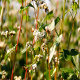 White buckwheat in the hot summer field. Close up of blooming flowers of buckwheat.