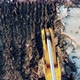 Excavator’s bucket is grabbing soil and cracking ice. 4K