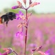 Bumblebee collects nectar from pink flowers, slow motion