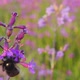 Bumblebee collects nectar from pink flowers, slow motion
