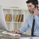 Businessman Talking on Phone and Using Computer