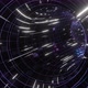 Camera movement with rotation through a circular tunnel with animated, glowing patterns on the walls. Seamless animation. Vj loop