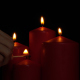 Lighting four red candles with match on black background. Full HD 25 fps 0:18 Sec