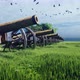 Medieval cannons in the field, in the middle of green grass on a cloudy day, before the battle.