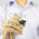 Man, Businessman, entrepreneur, creative designer, freelancer writes and draws on transparent wall : Cash Flow