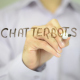 Man, Businessman, entrepreneur, freelancer, software engineer, programmer writes on transparent wall : chatterbots