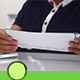 Man is looking the letters or checking bills. In office.