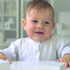 Close up of little baby giggling