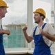 Medium shot. Slow motion.Cheering construction workers. Expressive emotions after success. Professional shot in 4K resolution. 025. You can use it e.g. in your commercial video, medical, business, presentation, broadcast