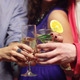 Happy young people clinking their glasses and drinking cocktails