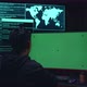 Child Hacker Hacking With Isolated Mock-Up Green Screen And Code On Multiple Computer Screens, Cyber Attack