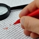 Spy reading word data encrypt with magnifying glass. Cipher encryption code or data