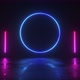 A colorful circle neon flickering frame on a dark reflective matte surface in a seamless loop.