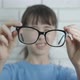 Clear vision. A teen takes off her glasses and has a blurred vision in the room.