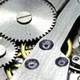 Working mechanical clock mechanism gears.