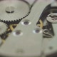 Working mechanical clock mechanism gears.