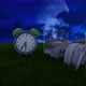 Alarm clock ringing and waking up.World environment day concept the planet on green grass,bed and clock.