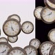 The camera goes backwards in the composition where the clocks come together