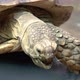 Close up of big crawling turtle with a hard shell at the zoo. Tropical reptile specie.