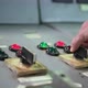Close up. Engineer checking temperature pipes in control room. factory employee controlling, pressing important technology button at control panel of an automatic machine