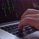 4k close-up hacker hands typing on a laptop,The Matrix style binary code on laptop,falling number,data digital display,future tech concept background.