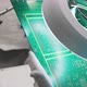 Close-up of specialist’s hands in a laboratory checking an electronic board with a magnifying instrument. Visual optical inspection for quality control of circuit board. Manufacturing concept.