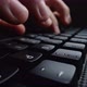 Time lapse close-up man typing on computer keyboard with fingers. Macro soft focus dolly shot. Computer programming, text chat online messaging and online marketing business hyperlapse concept.