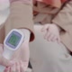 Close-up. Doctor’s hand holding non-contact digital infrared thermometer for screening female body temperature.