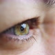 close-up. a woman’s green eye opens. Concepts of laser eye surgery or visual acuity control. ophthalmology clinic.