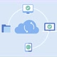 A concept of cloud computing, cloud storage, cloud network, sync cloud data video clip for communication, cloud system, information technology projects