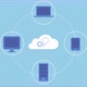 A concept of cloud data storage, computer devices connected to cloud network, business cloud computing, cloud security, conceptual 2d animation video clip.