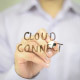 Man, Businessman, entrepreneur, freelancer, software engineer, programmer writes on transparent wall : Cloud Connect