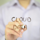 Man, Businessman, entrepreneur, freelancer, software engineer, programmer writes on transparent wall : Cloud Data