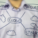 Man draws on transparent screen Cloud Functionality, Illustration