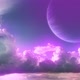 An impressive picture of the sky of another planet. With running clouds at the beginning of sunset against the backdrop of the crescent of the mother planet – the gas giant.