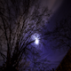 A dark look at a tree in the middle of the night. Clouds rush by as the moon high lights the sky.